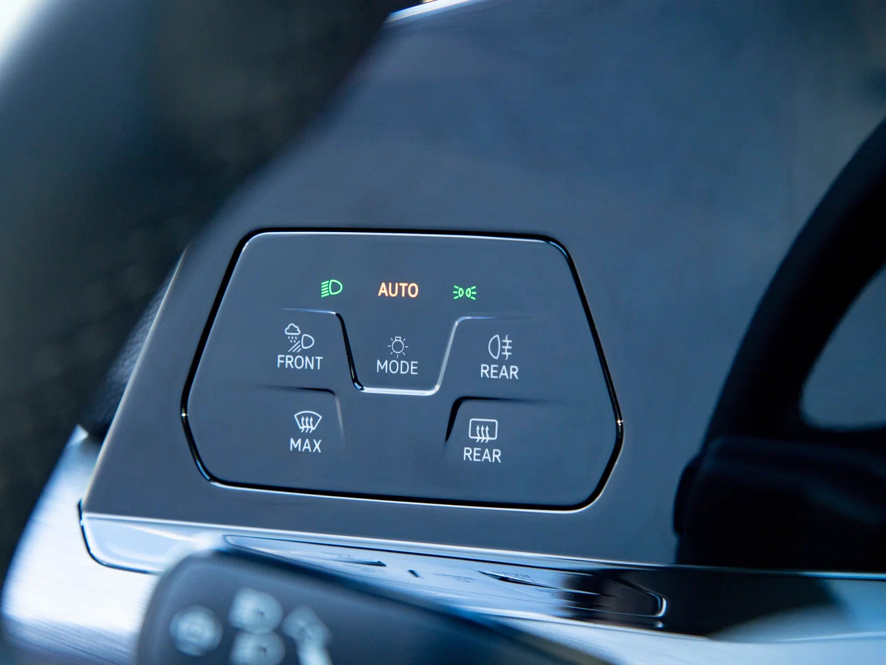 Спортивное мультифункциональное рулевое колесо с кожаной отделкой и обогревом, с подрулевыми переключателями передач и сенсорными кнопками